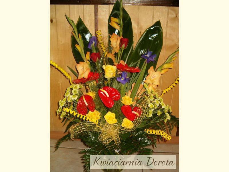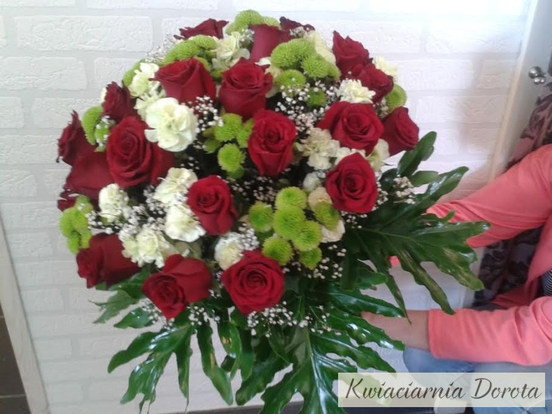 Przedstawiona oferta cenowa oraz wygląd produktu ma charakter informacyjny. Podane kwoty mogą się nieznacznie zmieniać w zależności od ceny rynkowej kwiatów i dodatków. Prosimy zadzwonić lub skorzystać z naszego formularza w dziale „Zamówienia” w celu potwierdzenia ceny oraz szczegółów produktu.