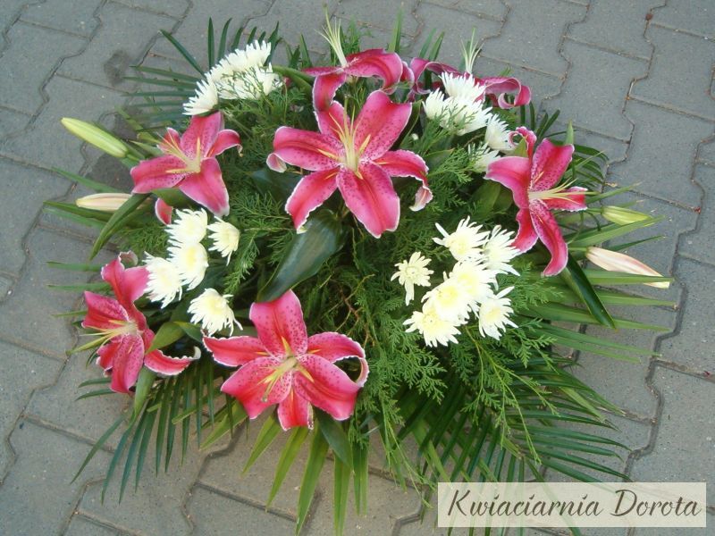 Przedstawiona oferta cenowa oraz wygląd produktu ma charakter informacyjny. Podane kwoty mogą się nieznacznie zmieniać w zależności od ceny rynkowej kwiatów i dodatków. Prosimy zadzwonić lub skorzystać z naszego formularza w dziale „Zamówienia” w celu potwierdzenia ceny oraz szczegółów produktu.